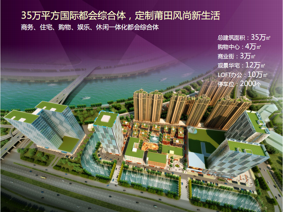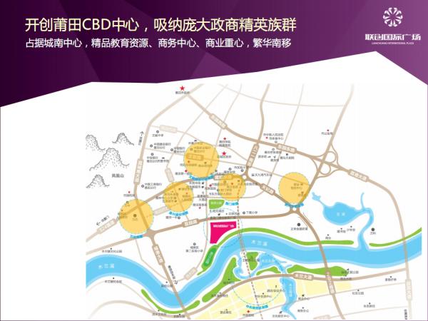 中国500强福建能源集团携手香港联创世纪实力打造,整合两岸三地优势资源,借鉴上海新天地、北京三里屯等国际知名案例,在木兰溪畔打造新一代都会综合体,打造莆田的国际品质“公园都会综合体”——“联创国际广场”。
